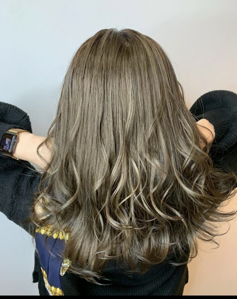ラベージュとアッシュ系の組み合わせでスタイリッシュなヘアカラーを体現しています。ハイライトの入れ方をあえてランダムにすることにより、動きのあるスタイルになりますよ!!